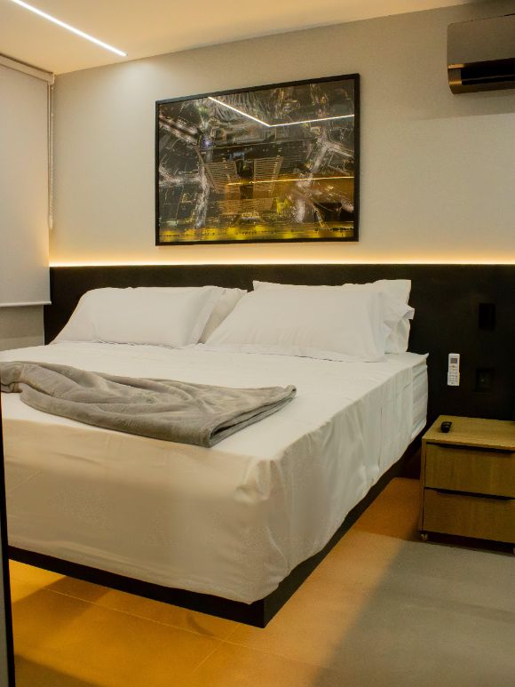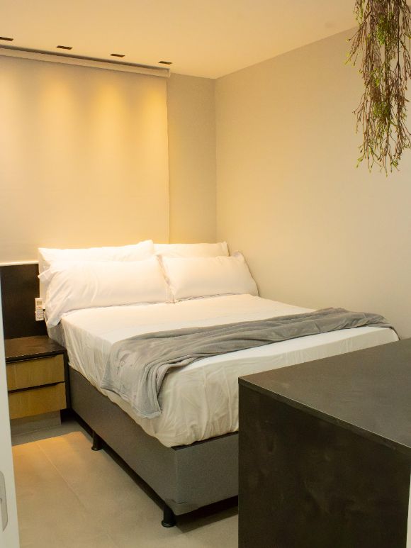 Nesse Studio, você pode ficar sozinho, a dois ou com até 3 pessoas! Ele tem cama de casal King Size e um sofá cama super macio.
